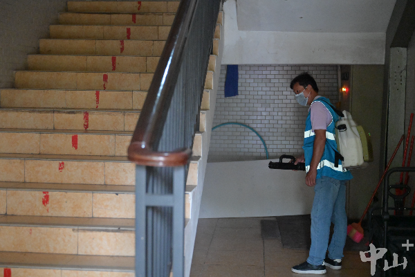 中山市消毒管理站的工作人员在中山市实验中学内进行蚊虫消杀。记者 缪晓剑 摄